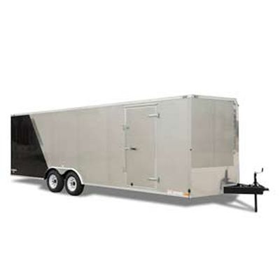 Double Rear Doors. 18` Wedge-Front Nose. C/S Door (24` on 5` wide, 32` on 6` & 7` wide, 36` on 8` wide). Semi-Style Camlock Door Latch. Door Hold-Back on Rear Door. Leaf-Spring Axles ( torflex axle optional). Silver Powder Coated Wheels. Nitrogen Filled Tires. Galvanized Roof. Aluminum Top Rails. 16` ATP Stoneguard. 1-12V Dome Light. 2-Flow Thru Side Wall Vents (on 5`,6`,7`,& 8` wide models). LED Lighting. Aluminum Exterior Fenders.