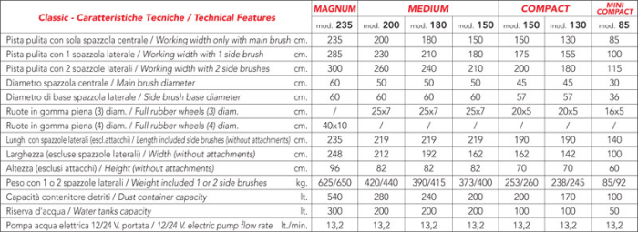 - AUTOMATICALLY SLIDING BOTTOM: for unlloading of picked up debris (hand opening for mod. Mini Compact)