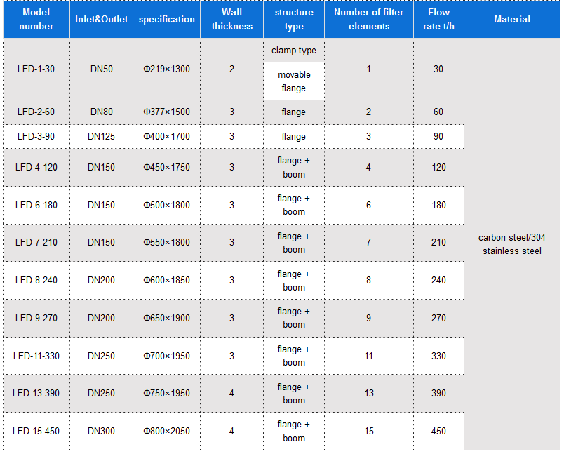 - Small filtration resistance, large flux, strong dirt interception capacity, long service life.