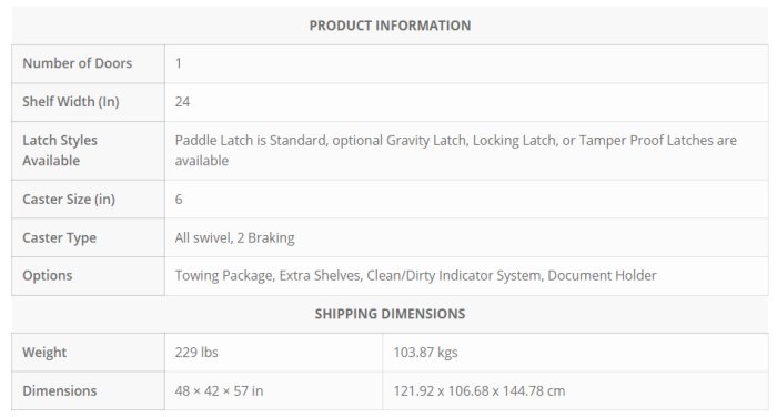 Lakeside’s classic case cart systems are highly configurable and designed for durability. Lakeside 6930 stainless steel case cart includes one door and one pull-out stainless wire shelf. Internal dimensions are 36″ W x 29″ D x 39″ H and the shelf width is 24″. Pitched floors with integrated floor drains make drying easier and limits pooling. Doors open 270-degrees and sides have catch to hold doors in open position. Standard paddle latch secures doors during transit. Accessories can be added at time of order or in the field with limited or no tools required. (4) premium 6″ swivel MedCasters with precision ball bearings, (2) with brakes are standard.