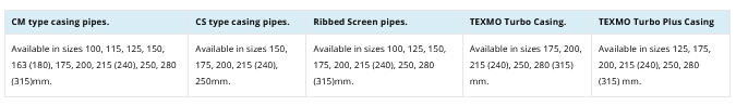 TEXMO Casing Pipes are manufactured under strict quality control with latest technology As per IS-12818/2010 specifications, DIN: 4925 & ASTM-F480 Standards. TEXMO Casing Pipes proves to be the most vital and long lasting for a tube well when these are properly selected and installed as per the site conditions, thus make a tube well dependable for longer period. In the past metal Casing of M.S. material in plain as well as in screen were the first choice of the customer for their tube wells but over the period of time, due to deterioration of the metal of the screen pipe, due to rusting/corrosion an there by formation of bacteria in the stagnant water and contamination of water source etc.