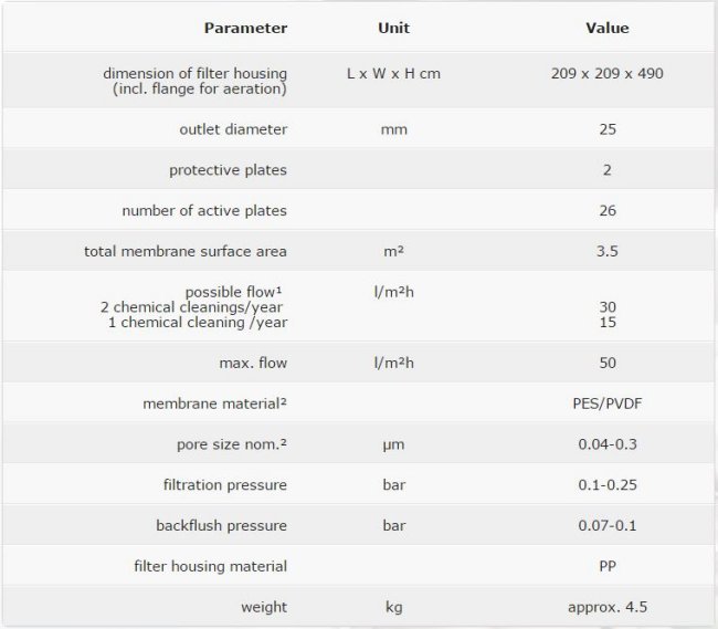 - laser welded membrane made of polyethersulfone (KTW approved)