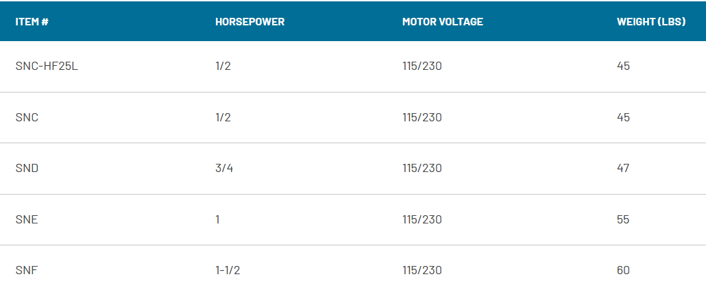 The ProJet SN Series 1/2 through 1-1/2 HP shallow well jet pumps provide excellent performance with strong pressure for wells to 25 ft. deep, and are self-priming after the priming chamber has been filled with water.
