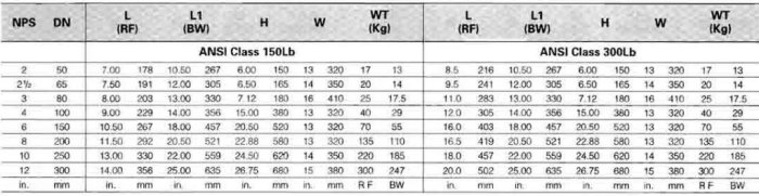 - Face to Face ASME B16.10