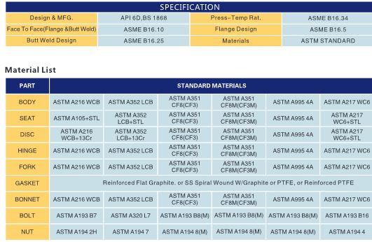 Design Features: Bolt Bonnet: to apply uniform load to the gasket. Swing Type.  Non-Penetrate Disc Shaft Valve Disc Fully Open. Horizontal or Vertical Service. Seat Surface Can Be Hardened. To Increase Wear Resistance. Flanged or Butt Weld End. The material is according to ASTM Standard. Model Denote:EFC=Elite Flow Control I 02=Size in inch I CK=CHECK Valve I 1 = 150Lb.