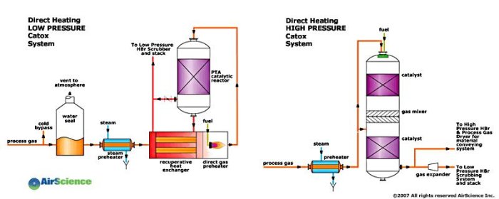 AirScience produces catalytic oxidizers for high and low pressure applications. For high pressure applications AirScience has a proprietary flameless in situ burner that is simpler and more economical than the traditional external hot gas generator and heat exchanger.