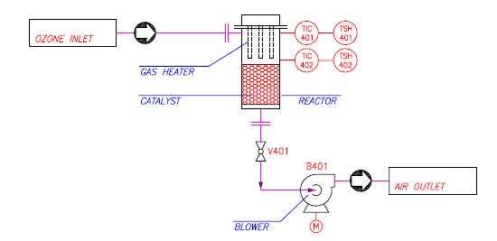 Catalytic destruction unit: Catalytic ozone destruction also proceeds optimally above a minimum temperature, therefore pre-heating of the ozone gas mixture is necessary.