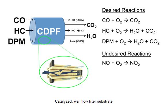 The desired and undesired chemical reactions from the CDPF are shown below.