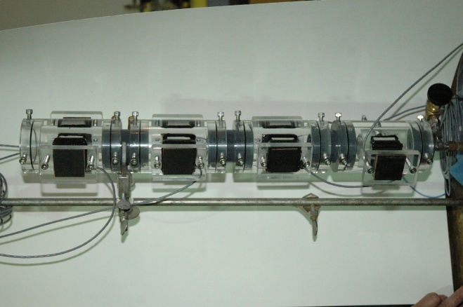 ABS-CSM sensor unit embedded in a by-pass configuration that is used for a triple-set ABS Acoustic Bubble Spectrometer system. The sensor unit includes an excitation hydrophone and a high sensitivity pressure transducer which are seen on the right