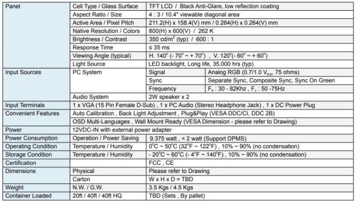 Winsonic - Model L1041-SN35L0 -CCTV Monitor