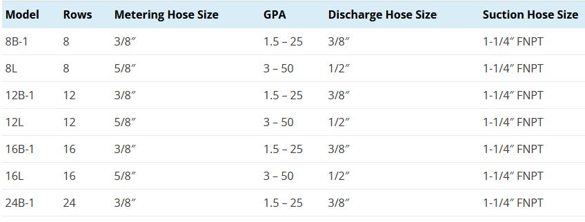 There’s a John Blue Squeeze Tube Pump to meet virtually any liquid fertilizer application. You can choose a pump with oval-shaped tubes and the backing plate built right into the tubes, or from a pump with round hoses and the patented spring loaded backing plate. The choice is yours – oval or round tubes – each squeeze tube pump offers unique features for your specific application needs.