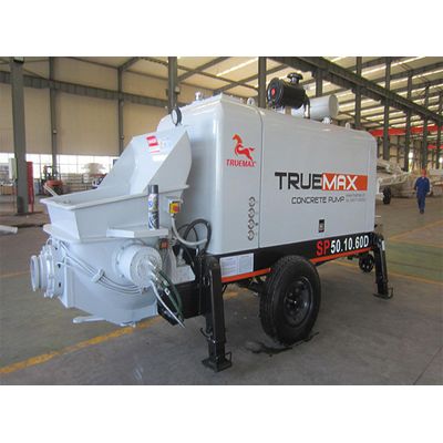 A unique feature of all TRUEMAX Concrete Pumps is the water cleaning system and effective reverse pumping of the concrete. The pump regulator provided is useful in protecting the hydraulic system from overheating and also the engine from overloading. The variable output regulator, pressure & flow regulator, not only assists in proper pump operation but also improves the overall fuel efficiency. The TRUEMAX 50 series Diesel line pumps have a lesser towing length in their class and are ideal for pumping concrete up to a height of 60-80 meters. The TRUEMAX 50 series of high-pressure diesel and electric pumps optimize use of engine power for achieving high rise and long distance pumping. This ensures reduced fuel consumption along with extended pump life.