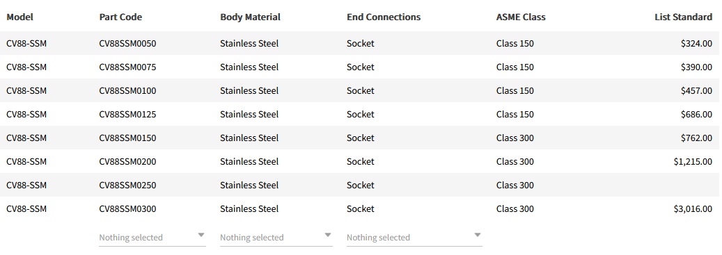 • Body Material: Stainless Steel (ASTM A351 Gr. CF8M)