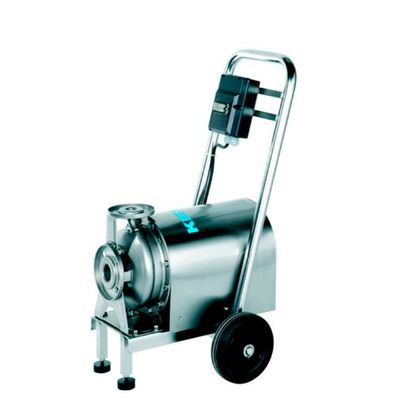 The pumps are normal priming centrifugal pumps, which must be below the liquid level. They are delivered on a chassis or base frame. Flanges, DIN thread, wine thread, RJT thread, SMS thread or clamp connections are possible as connections.