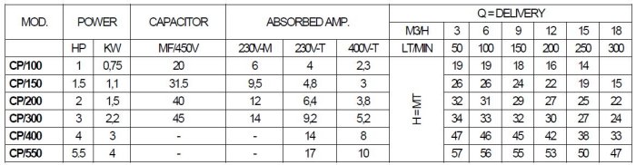 This pumps are suitable to be used in domestic, agricultural and industrial applications when big deliveries are requested with medium discharge head.
