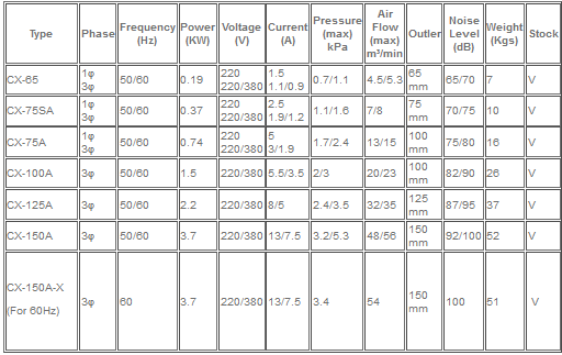 Chuan-Fan - Model CX Series -Centrifugal - Turbo Blowers