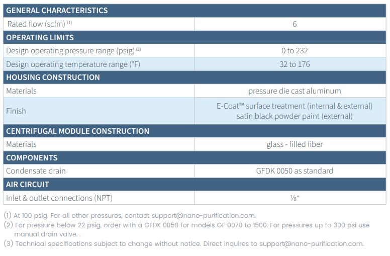 Nano - Model GF 0006 WS -Centrifugal Water Separators