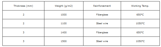 Ceramic fiber cloth with metallic wire (inconel or stainless steel) are also available.