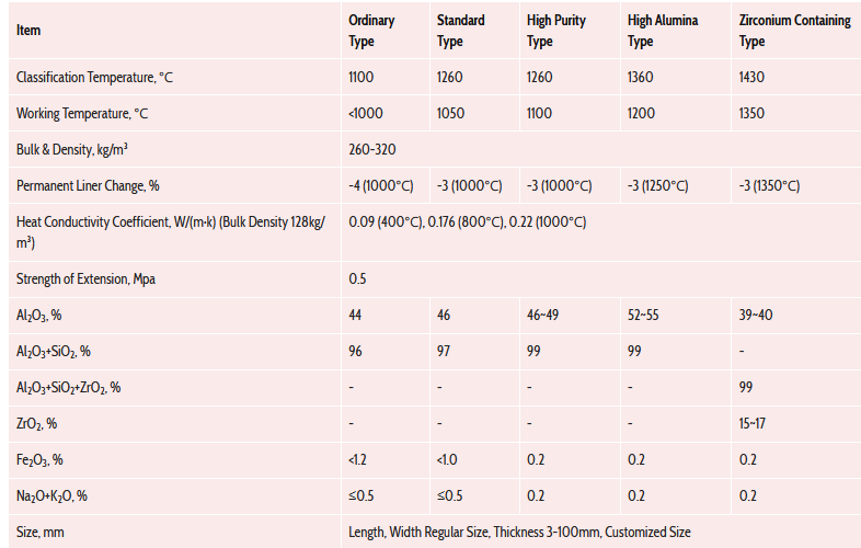 Kerui Refractory offers four types of standard and customized ceramic insulation sheets. These sheets have differences in performance based on the different compositions of alumina, silica, and zirconia. Please choose the appropriate types of ceramic fiber products based on specific performance criteria.