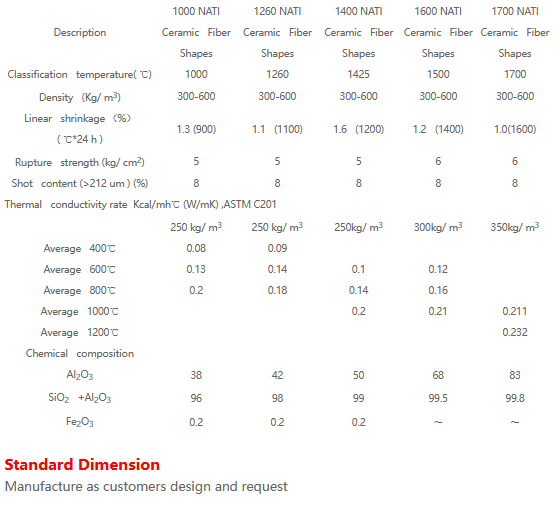 NATI Ceramic Fiber Vacuum Formed Shapes are made from ceramic fiber by vacuum formed during wet process, drying and casting as customers request and design, they can be produced different shapes, such as block, board, fabricated part, burner, cracking furnace peep sight hole, cylinder etc ,with density 300-400kg/m3?they can be also pre-installed resistance wire as electric boiling plate.