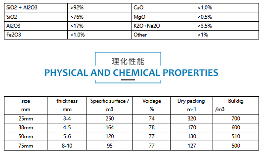 The ceramic moment saddle ring is an improved product of the ceramic arc saddle ring. The ceramic moment saddle ring changes the arched appearance on both sides, making the internal curvature radius different. This structural design overcomes the problem of overlapping and nesting between them. The gap distribution of the ceramic moment saddle ring is uniform, which improves the distribution of fluid, and has better void ratio and lower pressure drop than the ceramic lacI ring.
