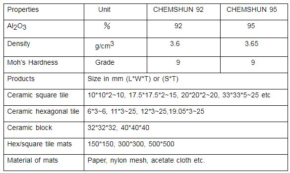 Ceramic lining tile sheet is consists of small square tile glued on acetate silk, nylon mash, paper or other special media. These wear-resistant alumina ceramic tile mats have the characters of thin thickness, low weight, flexibility which is ideal in applications where weight and space are limiting factors. These tile mats are easily installed by epoxy resin adhesive.