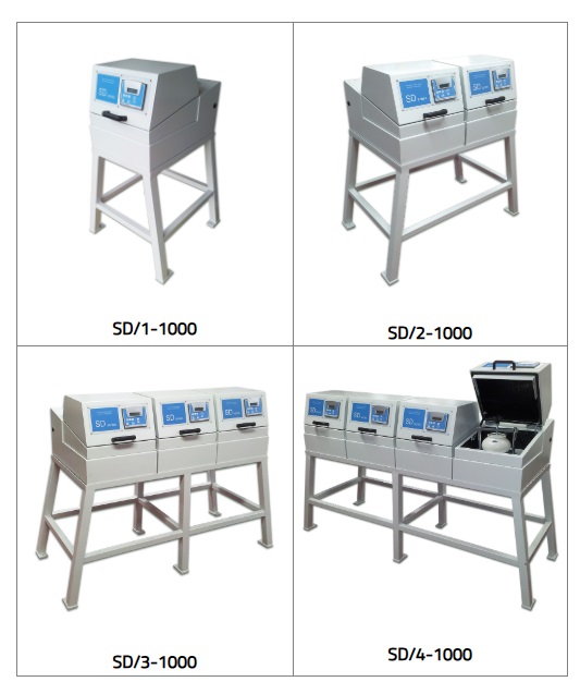 The series "SD" rapid mills are built in a modular version (original idea by Ceramic Instruments) that makes each unit totally independent. This means that while one is being prepared for a test, the other group (or groups) can continue working on their own, thus guaranteeing maximum operator safety.