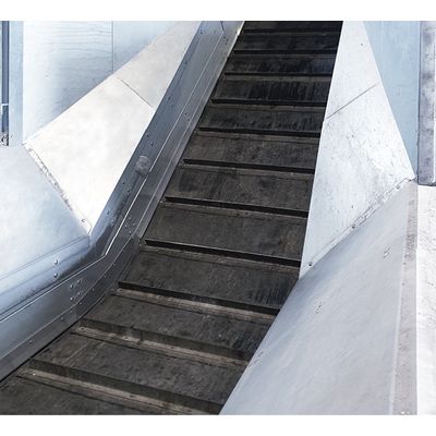 The cladding panels are screwed to the belt frame, which enables quick and uncomplicated maintenance service. Because the chain conveyor is manufactured in a modular construction, it can be extended or shortened without much effort. A solid pin conveyor chain of type FV112 is used as the conveyor chain. Lubrication is carried out as standard by automatic drip oilers, which switch off automatically when the chain belt conveyor stops.