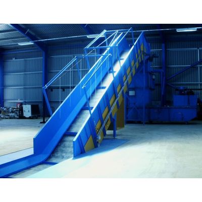 OKAY Chain Conveyors are legendary. Our belt on slat chain conveyors are powerful, chain driven machines with a rubber belt carrying medium over the steel slats. This rubber belt finish is a popular choice when very small items need conveying as it prevents material ingress into the steel belt. Available in a full range of widths and lengths with inverters, auto-oilers, flights and a range of belt finishes, these machines are as versatile as they are robust. Used to feed balers, pulpers, MRFs and sorting systems, our chain conveyors are a faultless workhorse with massively high uptimes of 99% and safe and easy access for maintenance. If you buy one, you won’t need to buy another for one to two decades, which makes OKAY chain conveyors the best value overall given their very long life.