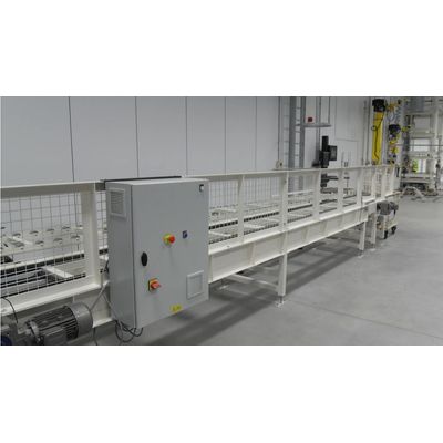Twin or triple stands of solid pin chain, driven by a common shaft connected back to a geared motor unit.