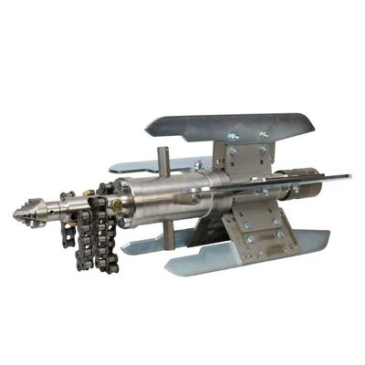 Stainless Steel Construction. Water Driven Design. High Speed, High Torque. Easily Configured for Multiple Jobs. Roller Chain is Forgiving on Pipe Walls. Operates in Egg-Shaped Pipe*. Changeable Cross Cutter and Rotating Inserts. Product Includes: Carrying Case, Tools and Owner’s Manual. Clean with Soap and Water.