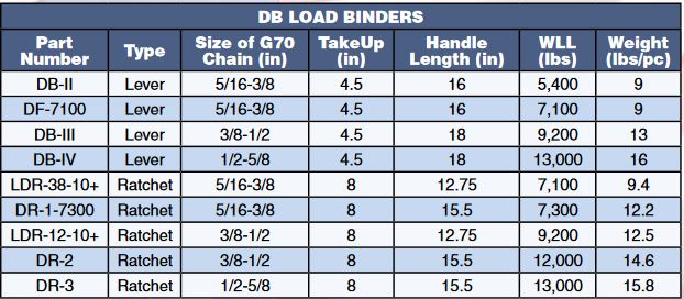 Chain Load Binders are made of formed steel, providing a quality chain binder at a competitive price. They are for use with Grade 70 transport chain assemblies. They arc available in Lever, Compression Spring and Ratchet models. All load binders meet or exceed NACM, FMCSA & CVSA standards.