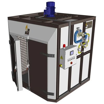 Chamber oven for heating products loaded on carts. “For heating products to the prescribed temperature. Air flow ventilation. Mineral wool. Double ceilings and walls.” Intended to heat products to the prescribed temperature. The evenness of products can be achieved through mixing the oven atmosphere with the air flow vents. Heating time depends on the material demands, they are the basis for determining the size of ventilators and gas burners. Ovens are insulated using mineral wool to prevent heat loss. They are equipped with a double ceiling and walls ensuring proper air circulation. The supply and return air ducts have temperature sensors built-in for each zone.