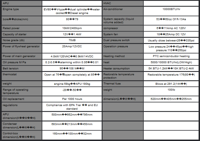APU is designed to provide power for the heatirg or cooling system while the vehicle is running or stopped