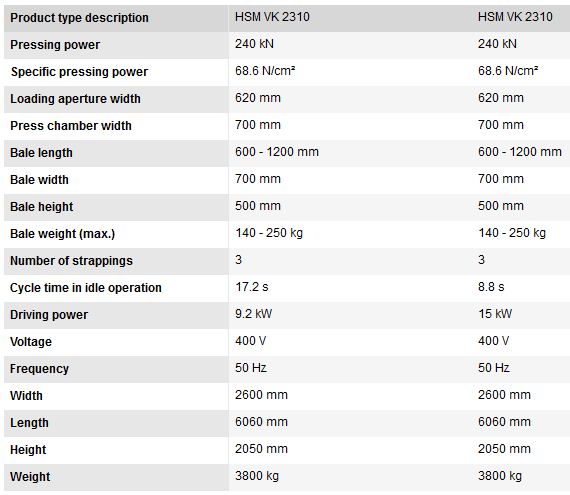 HSM - Model VK 2310 -Channel Baling Presses / Channel Balers