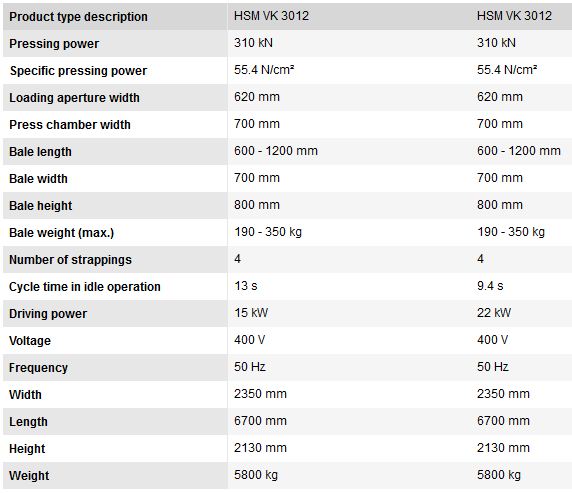 HSM - Model VK 3012 -Channel Baling Presses / Channel Balers
