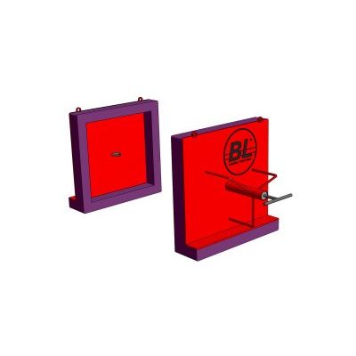 At the location where the cover will be used, storage is possible on wall hooks or stands by means of the attached eyelets. The barrier body is made of normal steel, primed, painted or powder coated, generally with a red finish ("traffic red" RAL 3020). Upon request, the cover can be galvanized or provided in a superior-alloy steel design.