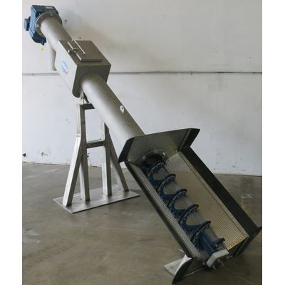 The PEWE SuperSkreen SSC In-Channel Screen consists of an auger spiral assembly with integral brush, transport tube, drainage section, press section and mechanical drive system. The SSC will be supplied with a perforated screen basket, solids discharge and a press zone drainage fitting. The SSC is designed to extract moisture from wet solids. The unit will utilize a screw to transport and compress the solids and allow the filtered liquid to drain.
