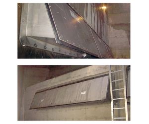 The ACU-FLAP control unit is an elastomer flap mounted on a rectangular concrete opening. In its resting position, the elastomer flap is bolted along the top edge of its stainless steel mounting frame, closing and sealing the opening. If the water level in the sewer or reservoir overflow rises, hydrostatic pressure against the ACU-FLAP control unit causes it to open, allowing water to flow over the weir. If the downstream water level rises, the ACU-FLAP is pressed against its stainless steel mounting frame so that no water can flow back into the sewage system, reservoir or pond. The ACU-FLAP`s lightweight design makes it highly responsive to minimal changes in water level, while ensuring structural stability under average downstream water level conditions.