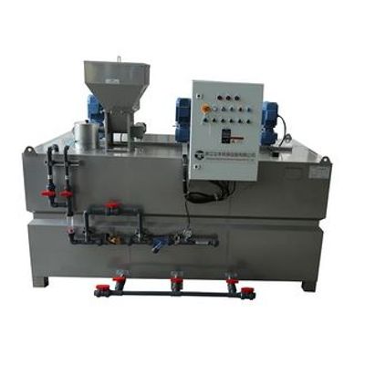 The function of chemical dosing device is to dissolve powder flocculants or dilute liquid flocculants. Volume = DS Reference Treatment Capacity per hour of configured dewatering machine x Flocculants addition rate x Dilution ratio x Retention time.
