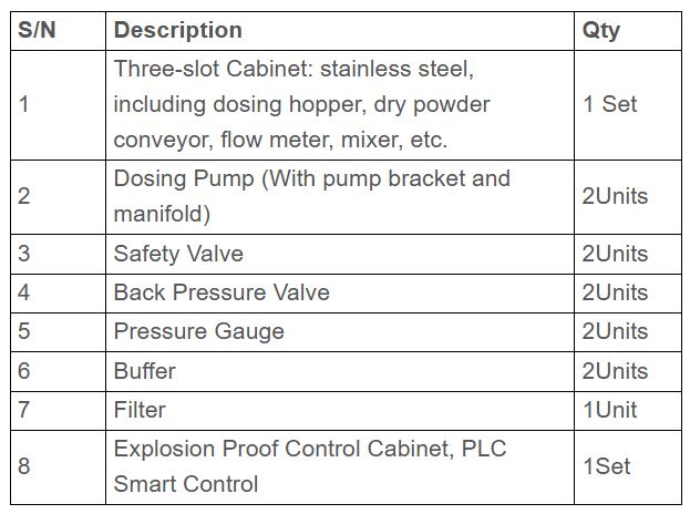 Automatic Chemical Dosing System can be used with main dewatering equipment such as decanter centrifuge, screw press and filter press for preparation and dosing flocculants solvent.