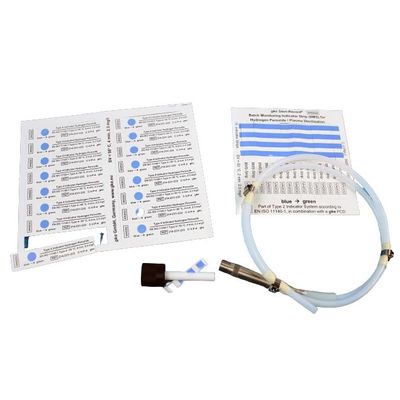 Packaging Monitoring indicators Package monitoring indicators are used inside packs or containers to monitor all relevant parameters of hydrogen peroxide sterilization processes. Package monitoring indicators only provide sterility information at the position inside the chamber where they are located. It is not possible to monitor internal areas of hollow goods, i.e., tubes and/or minimal invasive surgical (MIS) instruments with package indicators as they cannot be placed into hollow devices. Test set and process challenge devices (PCD) used in hydrogen peroxide sterilization processes. The indicator strip is placed in the test Device. The test Device is sterilized together with other packages and containers.