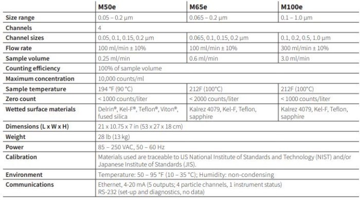 Particle Measuring Systems engineers, manufactures, installs, calibrates, repairs, and maintains the HSLIS-M100e chemical particle counter.