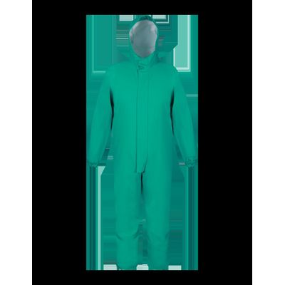 The overalls designed for possible contact with acids and alkalis. Protects against wind and rain. Made of fabric with high elasticity and increased resistance to chemicals. Welding technique on both sides increases strength of seams. Practical zip fastening with a placket. Users will appreciate the sleeve and leg cuffs improving waterproofness of the garment as well as the drawstring back and adjustable hood.