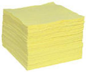 Use our Chemical Spill Cleanup Absorbent Pads and Rolls to soak up spills of acids, bases or unknown liquids. Made from 100% polypropylene to absorb most aggressive or caustic fluids. Sonic bonded `dimples` add strength and fast wicking power. The Chemical Spill Cleanup Absorbent Pads and Rolls bright yellow color is highly visible and indicates caution around spills.