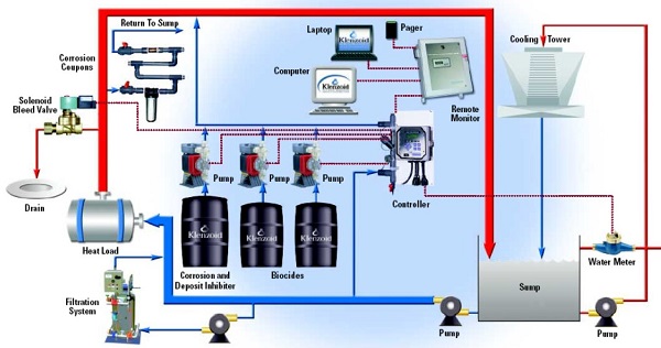 The cornerstone of a properly operating cooling system is an effective and consistent water treatment program. Effective water treatment ensures that the natural forces of scaling and corrosion inherent to every water system, are controlled and minimized for efficient, reliable operation of the cooling equipment. An effective water treatment program is one that is designed specifically for the water quality present in the region where the cooling system is operating and the expected loading of the cooling system. The water treatment program must not only counteract the natural scaling and orrosion forces of the water, but in doing so, it also must minimize the consumption of water and electricity by the cooling system.