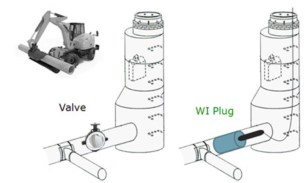 The WI-Plug can be installed in almost any location regardless of pipe size (4"-36") or pipe location. The WI-Plug can be tailored to an assortment of chemicals and is compatible with 99% of materials. Installation usually takes less than 1 hour per drain. The WI-Plug can be activated either directly or by the ECU. The intelligent WI-Plug system will report to the user if it needs maintenance.