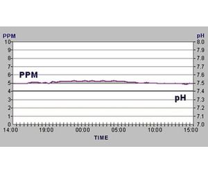 As shown on the graphic data log on the right, the new sensor gives the operator precise and reliable control of Free Chlorine under the most difficult conditions.