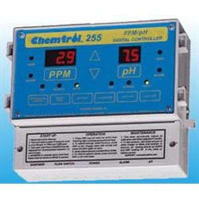 The Chemtrol 255 PPM/pH Digital Controller introduces the new sensor for Free Chlorine control in automated water treatment.A microprocessor-based digital controller, it is designed to maintain both free chlorine PPM and water pH in high-end residential pools, small commercial pools and spas and light industrial applications.Unlike other chlorine sensors on the market, these sensors are easy to installl and maintain, very precise and so reliable that they are covered by a full 2-year warranty.For better water management results, it is recommended to use ORP control of chlorine oxidizing activity and PPM monitoring of free chlorine. Alternatively, PPM control can be used for control of the sanitizer and ORP control for an oxidizing agent, such as ozone.