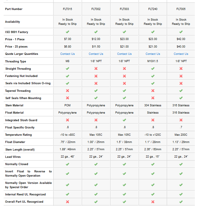 These commonly-used liquid level sensors are versatile, reliable and economical. Good for use in water and acids, they work well for general purpose applications in commercial or consumer products. For volume orders, we can customize any of these switches to meet your specific needs.